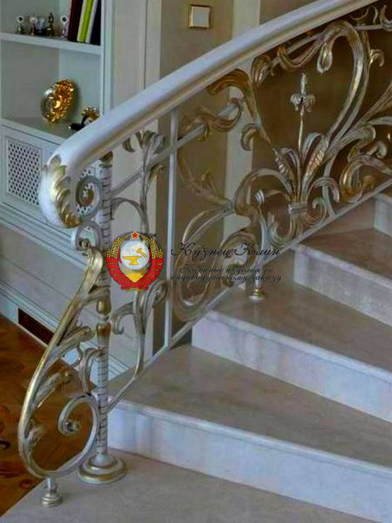 Былые перила с золотом и дубовым поручнем