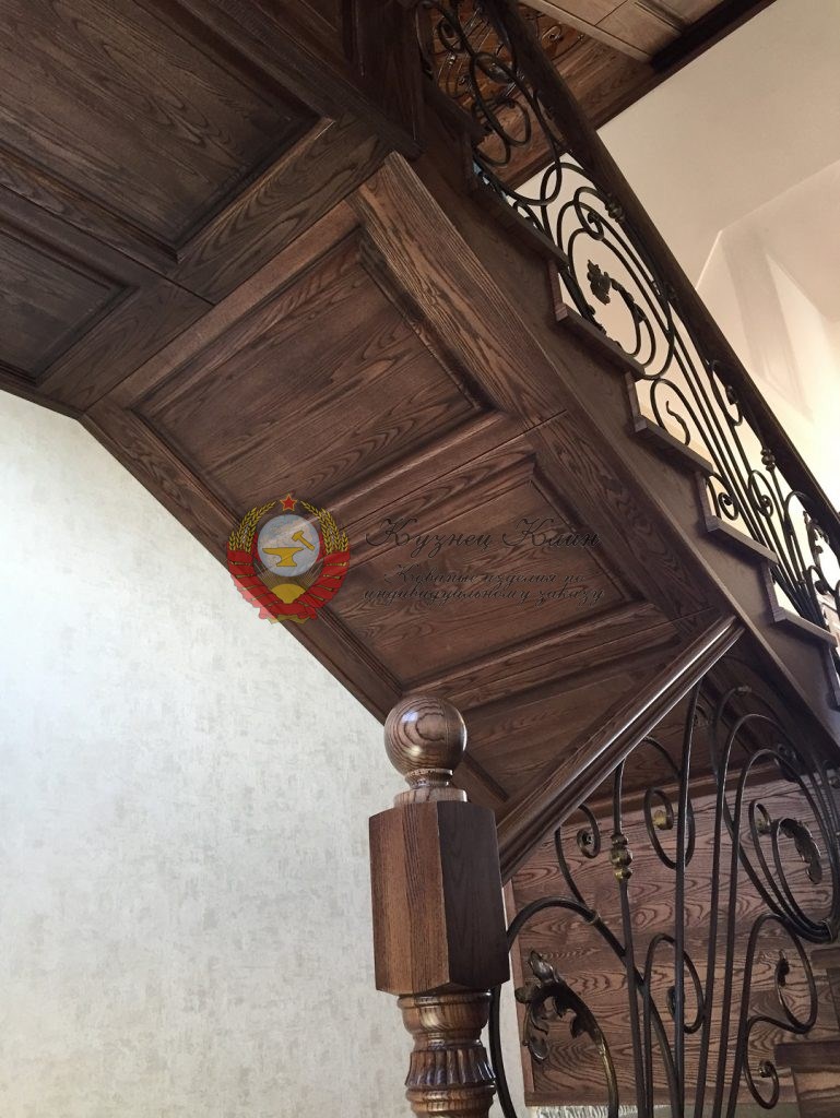 Деревяная лестница под старину с ковкой