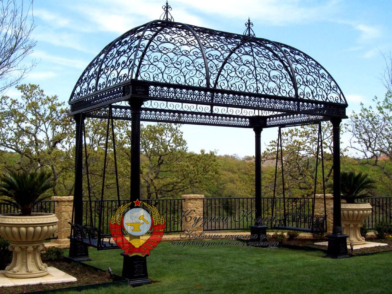 Кованая беседка с качелями